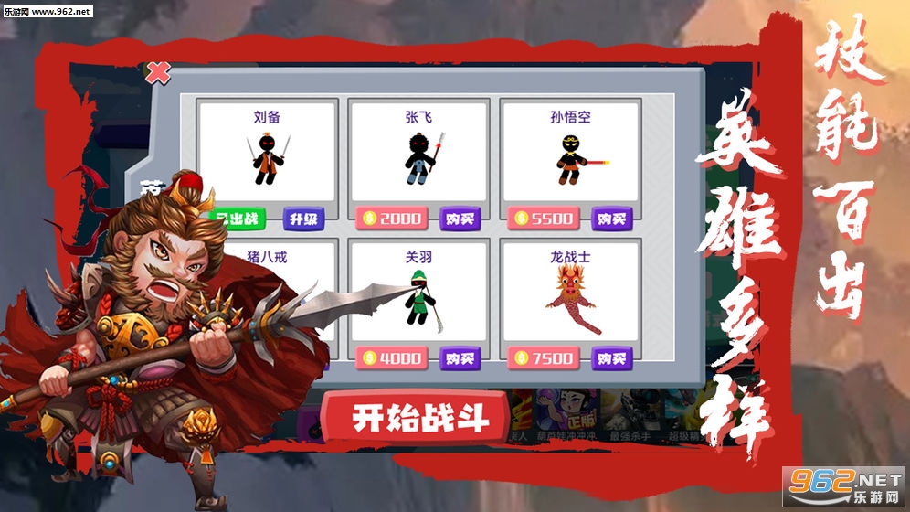 《桌面大战安卓版》是一款火柴人题材的魔性战斗竞技游戏,游戏有着对战模式、乱斗模式和人机模式三种模式可以挑战,有着张飞、关羽、孙悟空、猪八戒等众多的角色可以解锁体验,滑动屏幕移动人物移动,利用武器、拳脚、头部等来攻击对手。