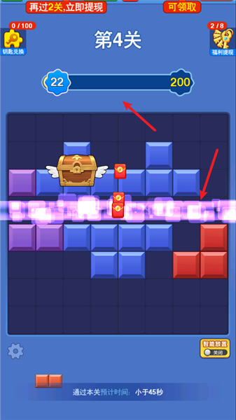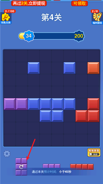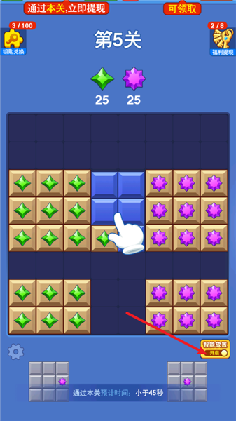 玩家可通过拖动方块放置到空白格子中,凑齐整行或整列即可触发消除并获得积分。点击方块可切换其朝向,便于更合理地规划空间。达成每关指定积分目标后,即可顺利过关并领取奖励。随着进度推进,还可解锁智能合成”功能,系统自动优化方块摆放,解放双手,轻松闯关。