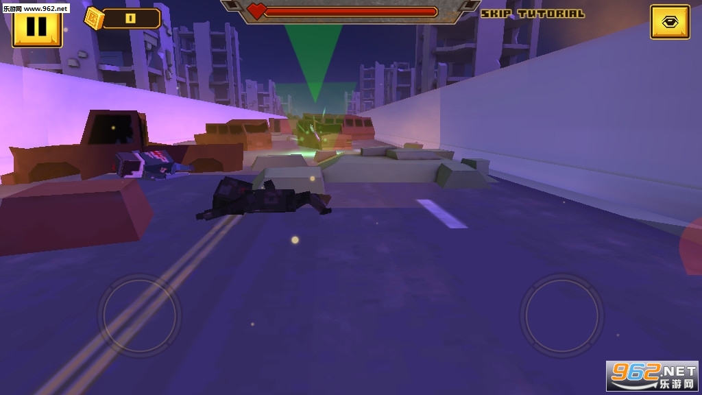 2、控制人物的走位,躲避方块僵尸的攻击,瞄准僵尸开枪射击。