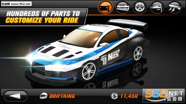 使用车身组件、自定义轮毂、车窗涂色和尾翼完全自定义你的爱车外观。让你成为独一无二的漂移野兽!