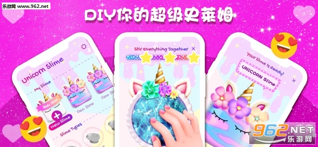-制作属于你自己的史莱姆:超过20个史莱姆种类,比如牛奶质感、泥土质感、果酱质感、闪粉质感以及金属质感。许许多多的装饰尤其是针对女孩子的独角兽装饰。还有多彩的颜色。