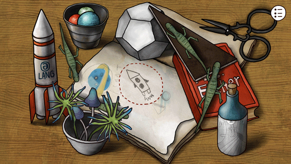 初入游戏,建议从基础操作开始熟悉流程:首先用剪刀剪下书页上的火箭图案,随后从火箭中走出,沿路帮助NPC点燃火堆以推进剧情。抵达海边时,记得拾取石头、贝壳和稍后才会出现的号角——这些物品将在后续环节发挥关键作用。