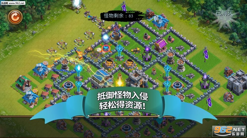 每四个小时玩家即可抵御一次怪物入侵。怪物入侵根据玩家主城级别动态调整怪物血量及伤害,更有入门、简单、普通、困难、炼狱难度自由选择。另外,高难度的成功防御将声名远扬。匹配其他敌人将有可观概率刷新怪物入侵的进度,每一次的成功防御都将获得极为可观的资源收入。