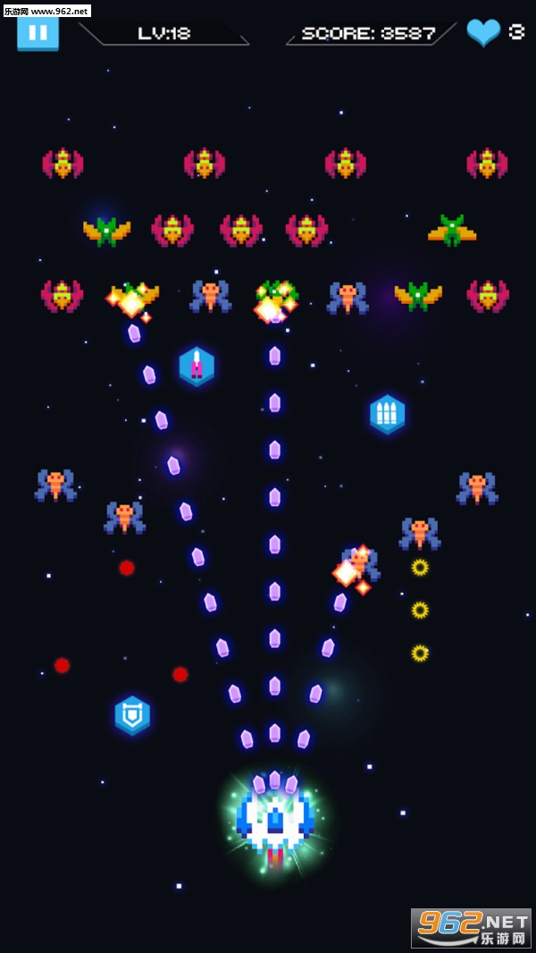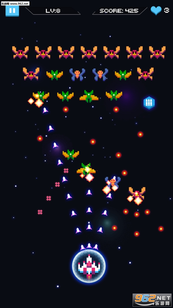 《太空侵略小蜜蜂安卓版》是以经典的FC小蜜蜂情怀系列设计的像素射击类游戏,在画面上和玩法上都有所升级,但基本的情怀性玩法还有所保留,这一次玩家是作为银河系的正义射手,对抗来自异时空的敌人,还可以升级你的飞船,释放强力的大招去打败它们。