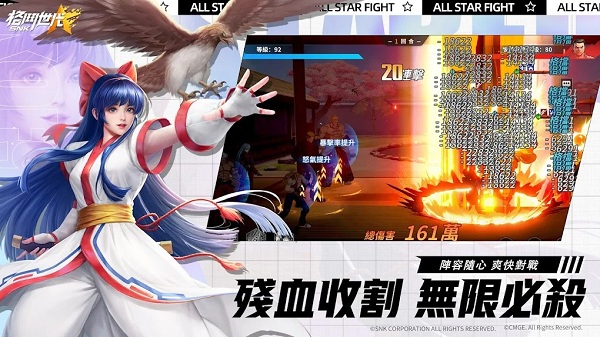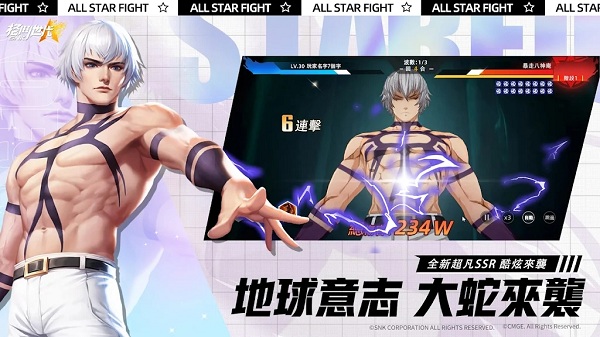 SNK多系列IP人物首次跨时空集结,无限连招无限必杀纵情战斗!放置挂机,轻松战斗,童年记忆里的格斗家大招再也不用搓招啦!