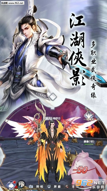 5、每一个武侠角色都具有各自的技能属性,强化装备,无限提升技能;