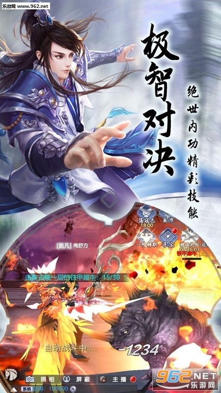 4、真实硬派的武侠画风,超强悍的打斗过程,多种不同的技能随机释放;