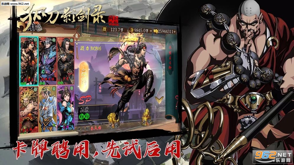 策略卡牌游戏,有着丰富的卡牌可以收集体验,玩家可以加入帮会,体验精彩的江湖剧情故事,不断的培养提高队伍属性,喜欢的朋友可以下载试试。