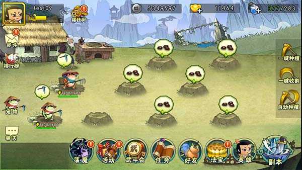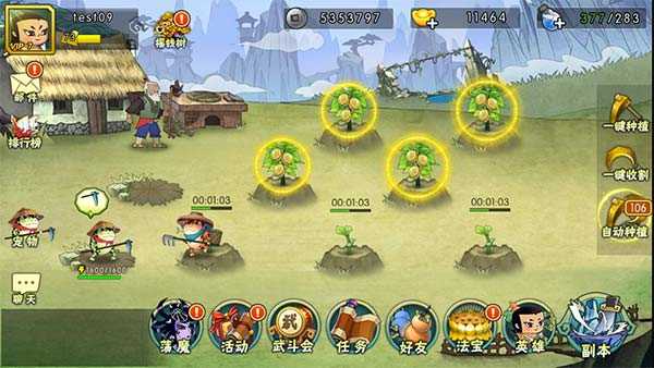 完成单人第一章勇闯妖洞9”即可开启农场功能。在空地上播种三类种子——银币、食材、宝石,它们可通过单人或组队副本掉落。作物成熟后收割即可获得对应资源,后续还将解锁一键种植”与一键收割”便捷操作。