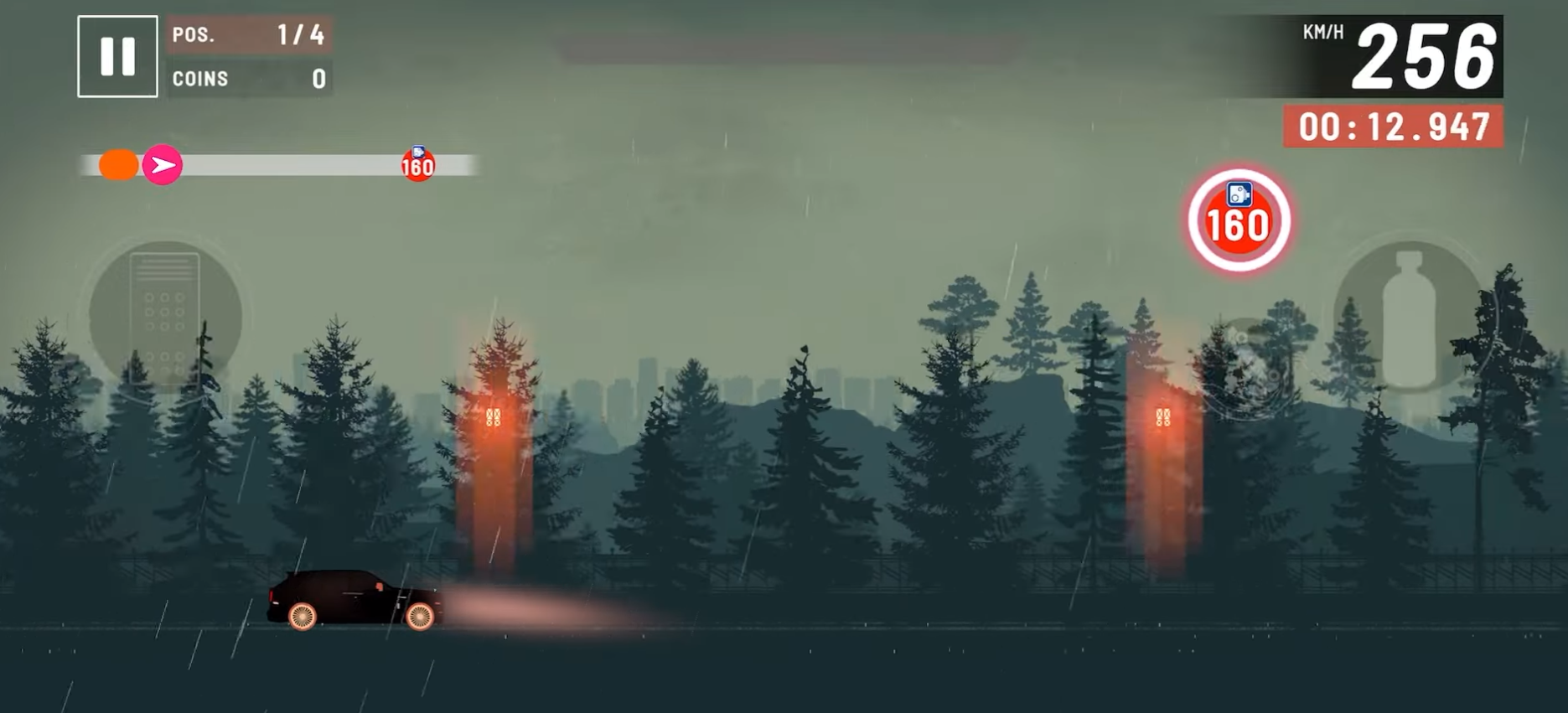《影子赛车崛起》以高速竞速为核心,融合了丰富的自定义系统与动态赛道机制。玩家需在阴暗诡谲的环境中精准操控车辆,巧妙躲避障碍,同时利用加速道具抢占先机。随着里程推进,目标进度条逐步填满,每一次冲刺都充满成就感。游戏采用直观的触控操作设计,左侧控制前进与刹车,右侧激活加速道具,右上角实时显示行驶距离,上手简单却极具深度。
