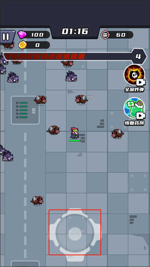 2、通过滑动屏幕控制角色移动,灵活走位是生存关键;