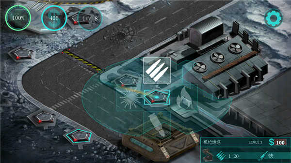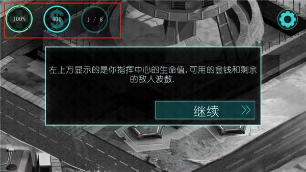 战斗中,双指缩放可自由调整地图视野,拖动屏幕查看全貌。左上角实时显示指挥中心生命值、当前资金及剩余敌波数。你的核心目标始终如一:保护指挥中心不被摧毁。