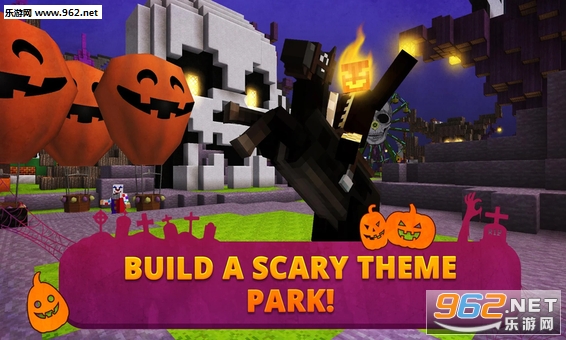 这是一个开放世界的探索游戏,里面有鬼屋,万圣节热气球,僵尸过山车等等。