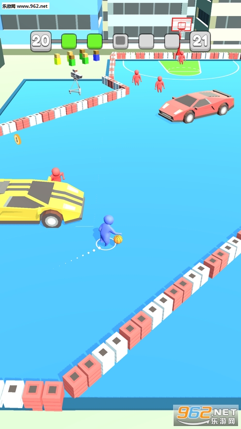 《Basket Dunk 3D安卓版》是由厂商Ketchapp推出的一款魔性小人扣篮闯关类游戏,游戏的画风精致,玩法魔性简单,在这里你需要帮助小人通过运球躲避前来阻碍你的对手,超越汽车,方块的障碍,进行扣篮闯关,玩法魔性 ,赶紧试试吧!