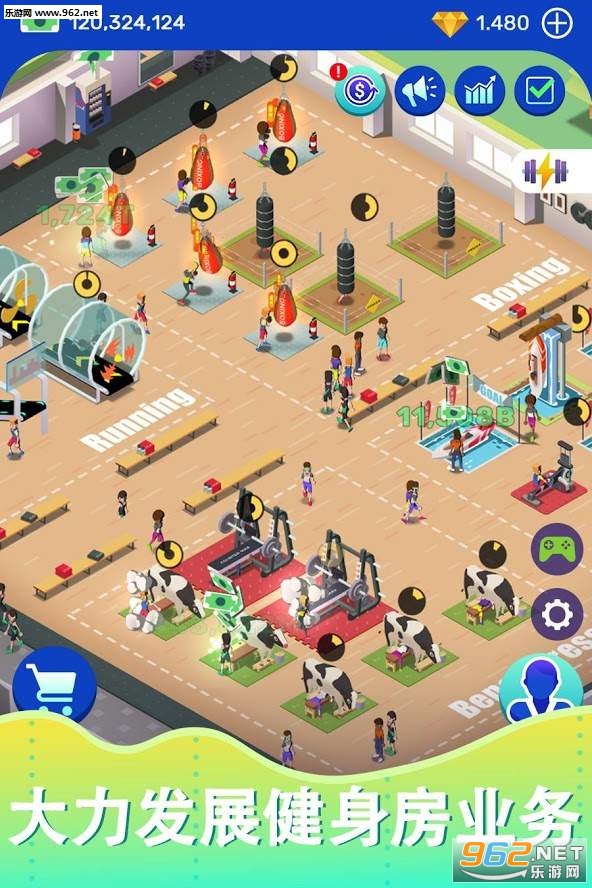 这是一款关于健身房的一款模拟经营类型的游戏,在游戏中你将成为运动健身大亨,还需要进行打造属于自己的帝国,你需要大力的发展健身的业务。