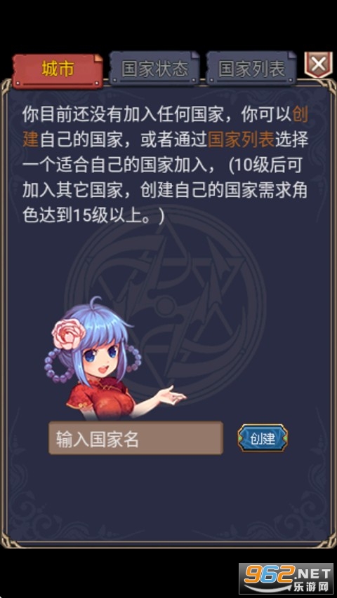 3、国家:众多玩家联合起来将可建立国家,分配任务给国民执行,扩张领土,与他国结盟。