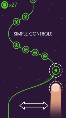 游戏的画面很静谧漂亮,玩起来也很简单,只要顺着线条走就不会有事,有着一定偏离限制,超过这个距离游戏就会结束