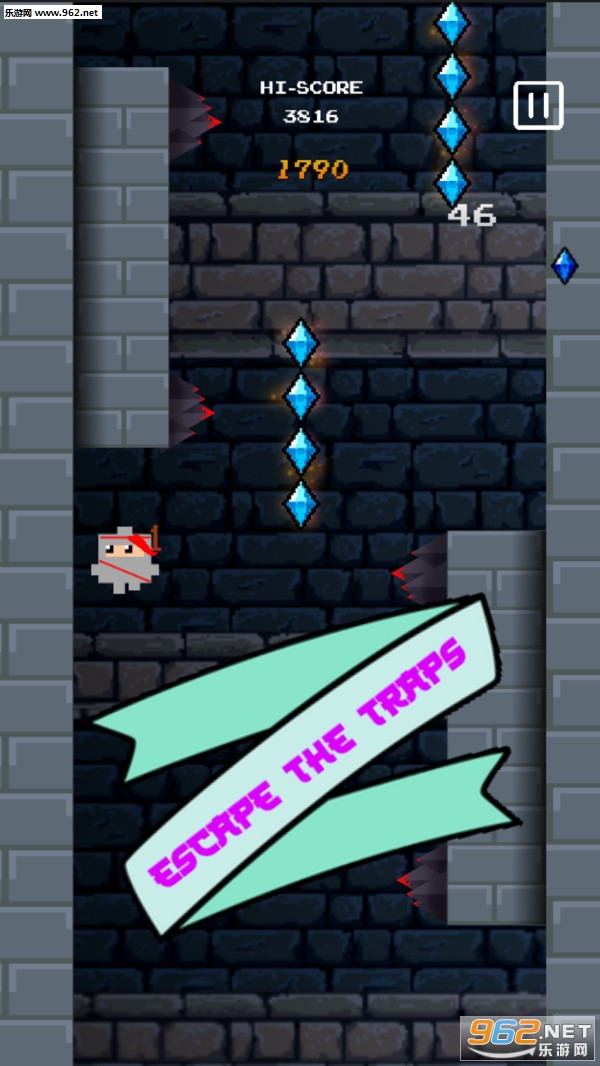 《忍者爬墙跳跃安卓版》这是一款像素风格的趣味休闲闯关类手游,游戏以物理跳跃为主题,玩家在游戏中需要操控像素小人沿着墙壁不断向上攀登跳跃,拾取大量的钻石与物品,同时主要注意躲避各种各样突如其来的危险与各种障碍物。