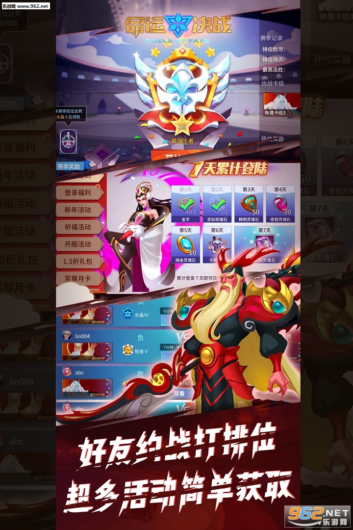 《命运决战九游版》是一款非常好玩的战棋卡牌手游,这款游戏非常考验玩家的策略能力,通过收集卡牌强化角色来增强玩家的竞技实力,多样的游戏内容玩法,丰富的竞技模式体验,喜欢这类手游的玩家快来下载吧!