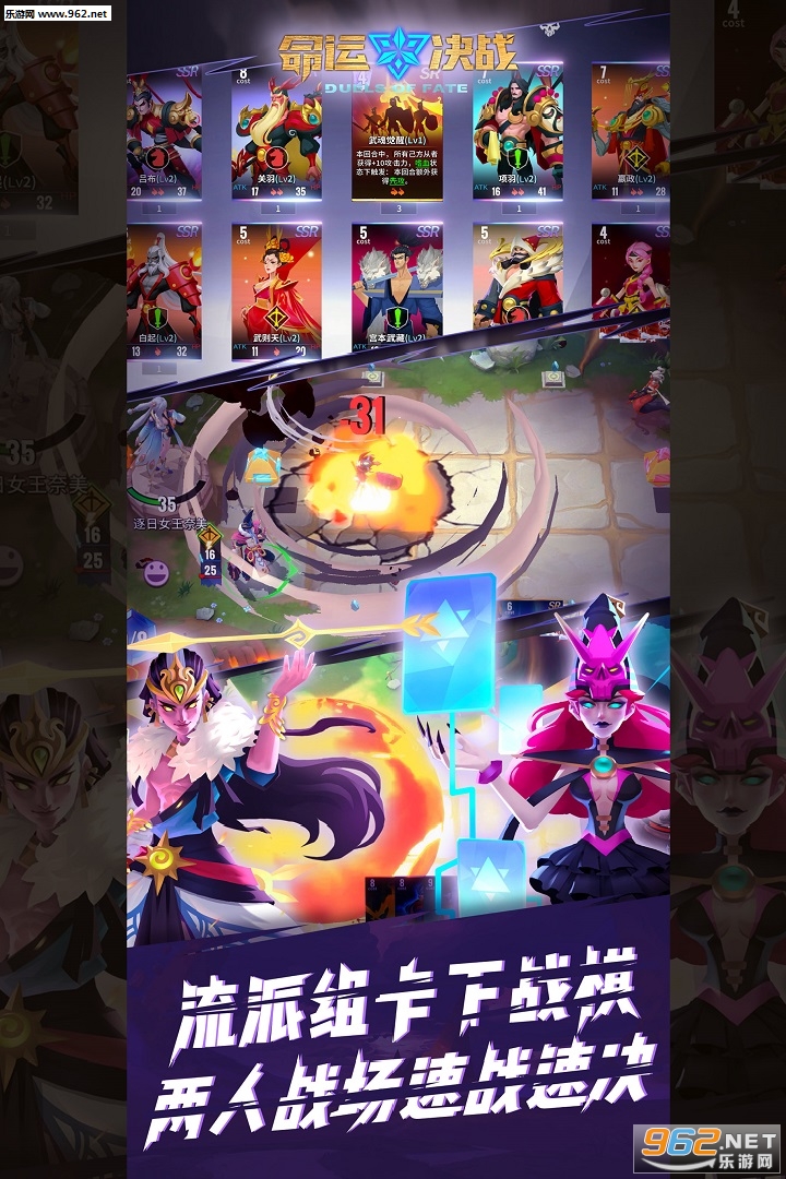 《命运决战》一款5分钟快节奏2人对战战棋卡牌游戏,超刚竞技排位赛、双选赛、巅峰赛获取成就荣耀,超酷冒险、解谜、实临挑战、试炼之间副本获取丰厚奖励,不断培养自己喜欢的卡牌成长强大,组成超强流派阵容征服对手成为最强王者。