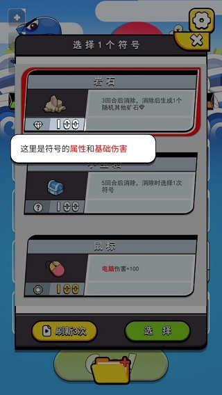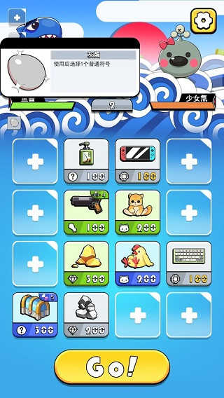首次进入游戏后,点击开始游戏”并观看简短剧情引入,即可正式踏上净化海洋之旅。战斗界面中点击Go”按钮对氚氚怪发起攻击,每回合系统会提供新的符号供你选择部署。过程中可随时查看符号的基础伤害与技能描述,合理规划资源分配是取胜关键。