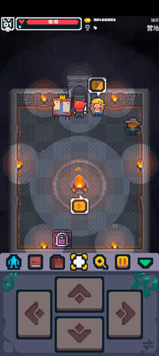 2、想要切换角色时,移动至篝火处,再次点击朝向篝火的方向键即可进入角色选择和强化界面