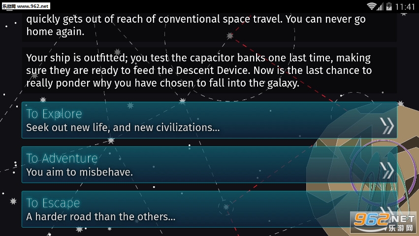 这是一款文学太空探索休闲类游戏,有趣的是,游戏中的剧情来源于由程序生成的科幻小说。在游戏中,你将要扮演一个在星际航行者,并且正在进行一个以银河系中心为目的地的单向星际旅行。在路上,你将会遇到了其他人,一个新的成员,遇到各种各样令你叹为观止的文明,你甚至可以挖掘外星遗址。在这个冒险的旅途中个,你能和新的成员建立联系,并且享受当代科幻给你带来的启发。喜欢科幻或者是这类游戏的朋友不要错过哦。