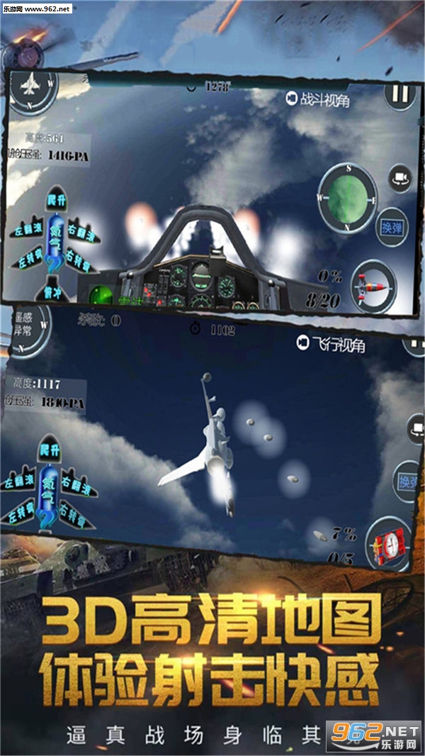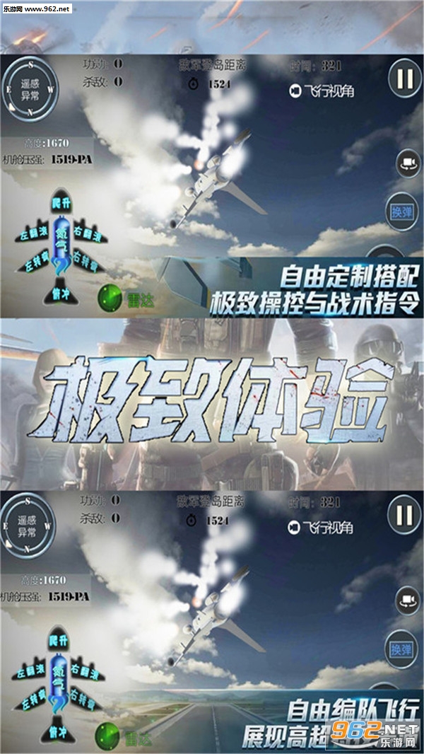 游戏戏高度模拟飞机驾驶,你可以自由的选择左右旋转,俯冲或者是飙升等等
