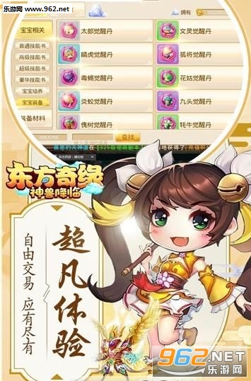 《东方奇缘神兽降临官方版》是一款东方背景的玄幻冒险RPG游戏,游戏中玩家可以尽情的去挑战各种副本,每个副本里面的大boss打发都是不一样的,不断提升自己的能力,这样你才能战胜更多的boss,获得更好的装备。