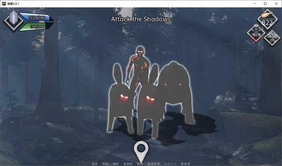 白天可在卧室点击地图开启探险。初期仅开放森林区域,随剧情推进逐步解锁城市、地道等新地图。探险界面实时显示生命值(蓝条)、耐力(绿条)及遇敌率(骷髅图标)。当遇敌率满格,即进入战斗: