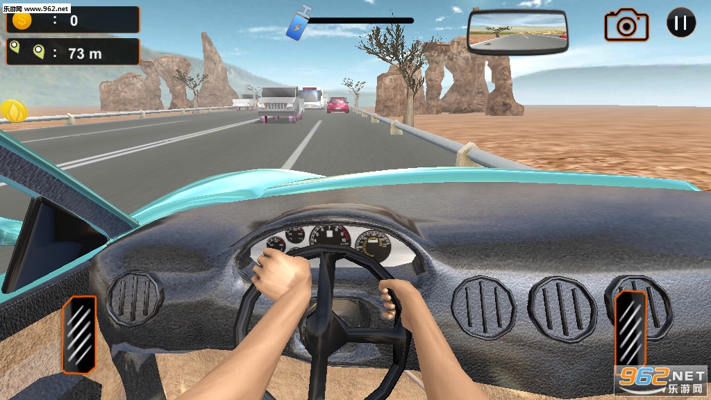 一款非常有趣的休闲模拟驾驶游戏,游戏中玩家将以第一人称的视角来进行操作,我们甚至可以看到自己的手,当然游戏的建模也比较粗糙。游戏的操作简单容易上手,灵活的在公路上进行加速超车,还在等什么呢?推荐给喜欢驾驶游戏的玩家。