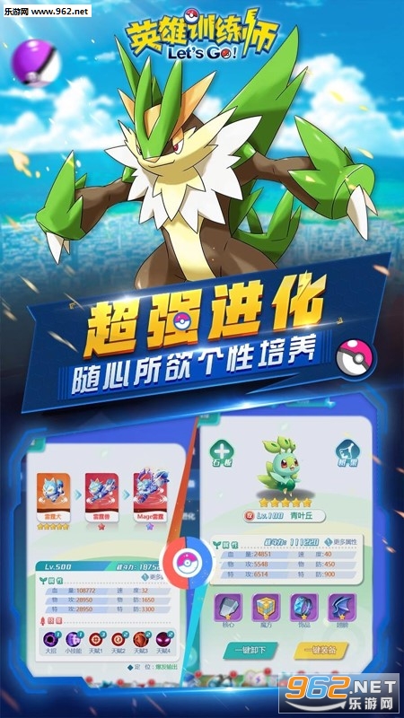 创新放置挂机,精灵收集养成游戏。游戏高度还原了全世代的精灵,让我们一起找回儿时的宠物小精灵记忆!