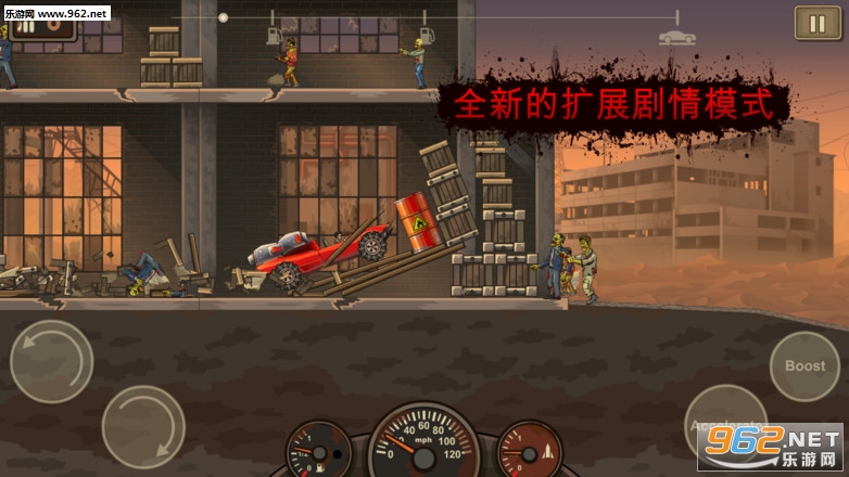 一款非常有趣的僵尸题材,越野闯关游戏,游戏中玩家将穿过僵尸占据的城市追踪会给你,注意在这一作之中你的战车不在是无敌的,你需要尽快摆脱僵尸或者消灭他们,游戏中还有着丰富的车辆和零件等待你的接受升级,推荐给喜欢闯关游戏的玩家。