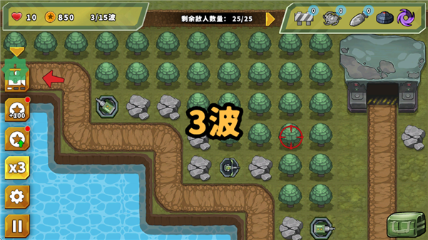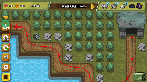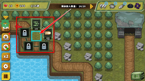 敌人将沿固定路径行进,你需要提前在其必经之路上布置火力点。
