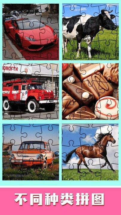 1,超多的动物拼图、汽车拼图和各种物品拼图选择;
