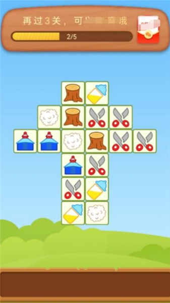 2、继续点击两个相同的图案,集齐三个后自动消除。