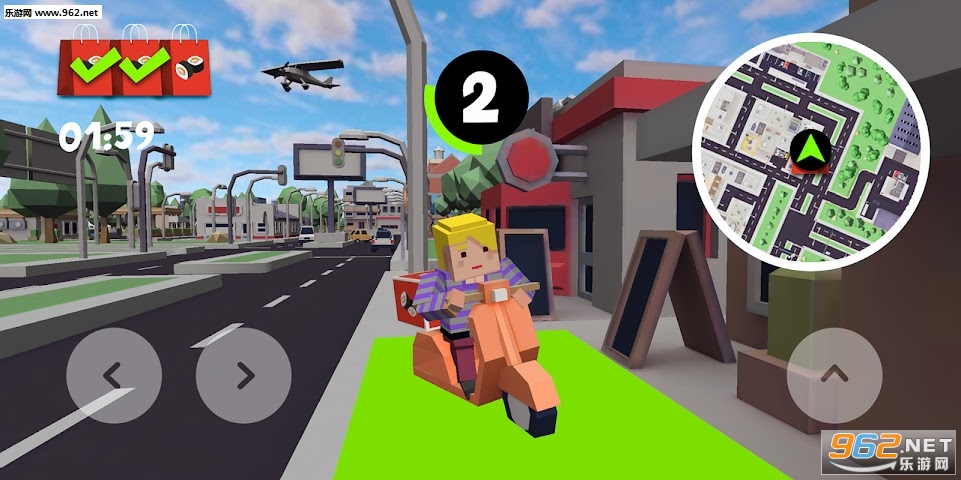 画风非常简约清新的一款模拟类休闲闯关手游,3D卡通像素风格打造,驾驶摩托车完成各种各样的外卖送餐任务,在城市中小心快速驾驶,躲避各种车流人流和障碍,准时将外卖送达。感受各种各样的游戏乐趣。