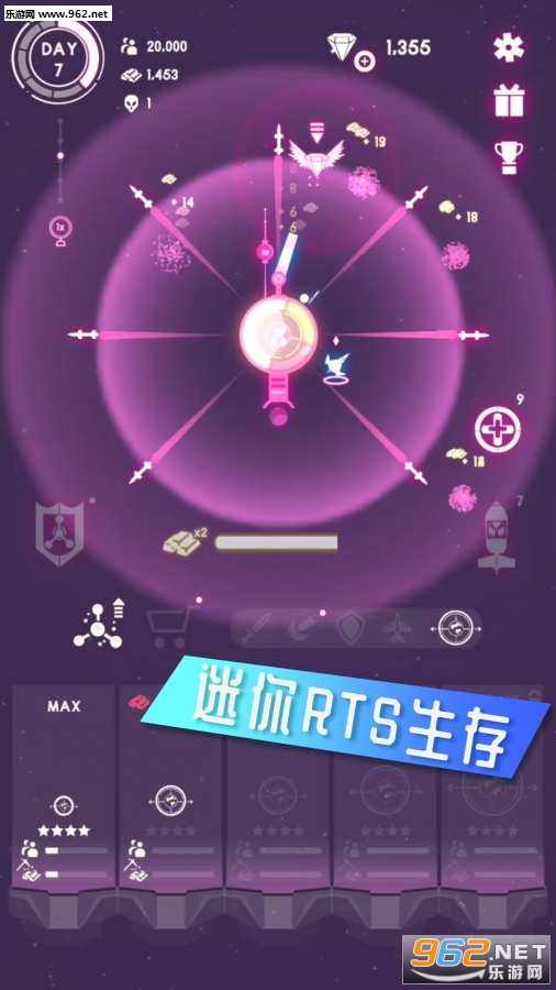 《人造重力》是一款迷你实时策略生存游戏,具有随机生成的敌人。