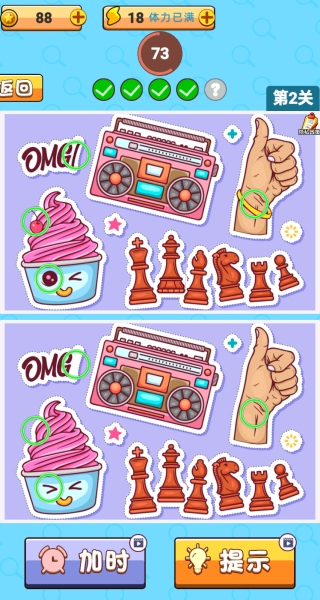 1. 当玩家从视觉混沌中精准锁定差异点并完成标记时,瞬间迸发的确认感与成就感形成独特的解压机制。