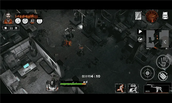 进入游戏后,首先选择难度模式——普通、困难或炼狱,根据自身操作水平灵活调整。初期目标是尽快逃离高危感染区,过程中需善用屏幕左侧虚拟摇杆控制角色移动。当靠近可交互物体(如箱子、门、道具)时,点击屏幕上出现的手掌标记”或直接点击物品图标即可进行搜索或开启。特别注意:丧尸对声音极为敏感,奔跑或制造噪音极易引来围攻,建议优先使用潜行。