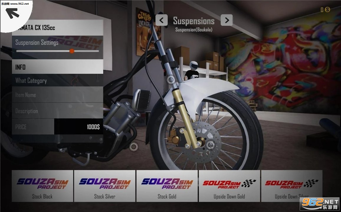 SouzaSim的主要作用在于调整:改变排气装置,轮辋,前大灯,通过配置悬架降低自行车等。您的自行车几乎每个部分都是可定制的。您还可以选择零件的颜色以适合您的样式。