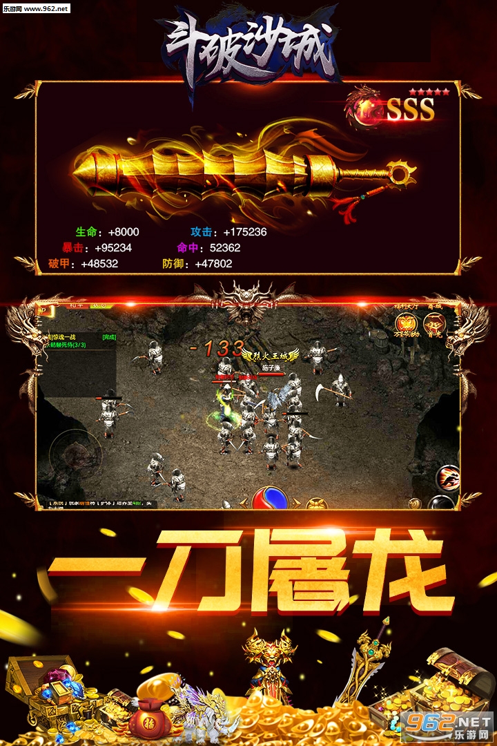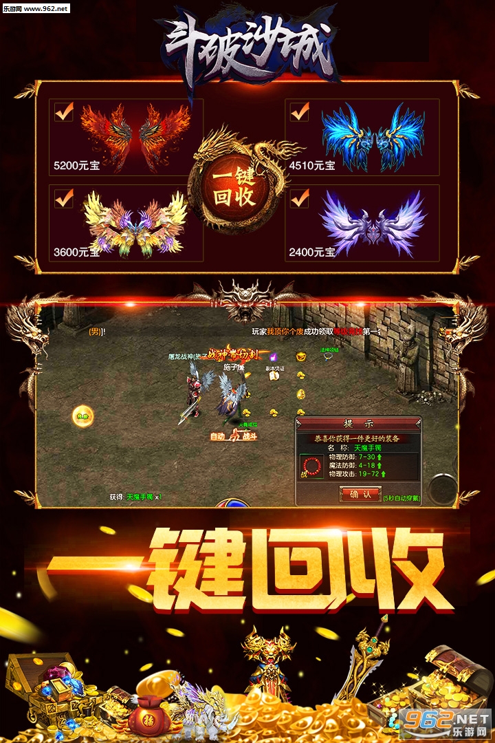 《斗破沙城九游版》是一款非常好玩的大型传奇类手游,这款游戏采用复古的热血传奇玩法,玩家可以创建经典的战法道三大职业进行冒险,多样的游戏内容玩法,精致的重制版游戏画面表现,感兴趣的老哥快来下载体验吧!