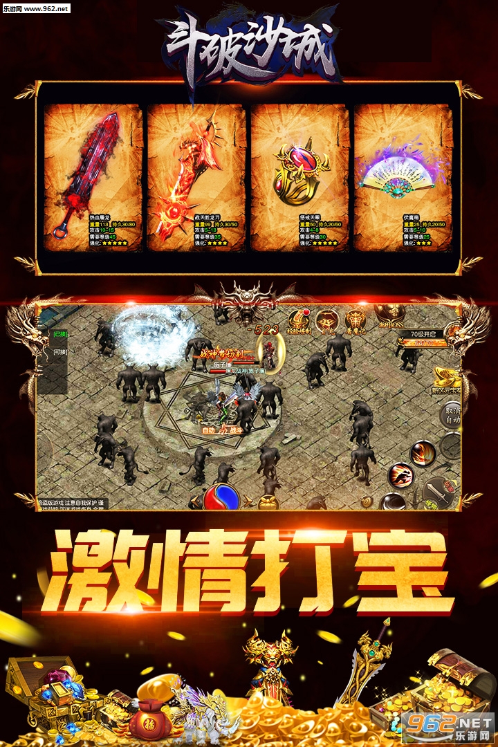2.万人同服在线热血PK,刷BOSS刷副本,掉神装,爆率简直高的不行,还可以进行自由交易,开局一把刀,装备全靠打