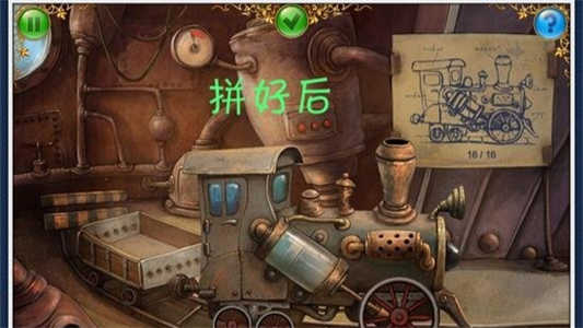 拉动操作杆并按下左下方红色按钮,进入火车组装环节。完成火车拼装与最终拼图后,第一关顺利通关。