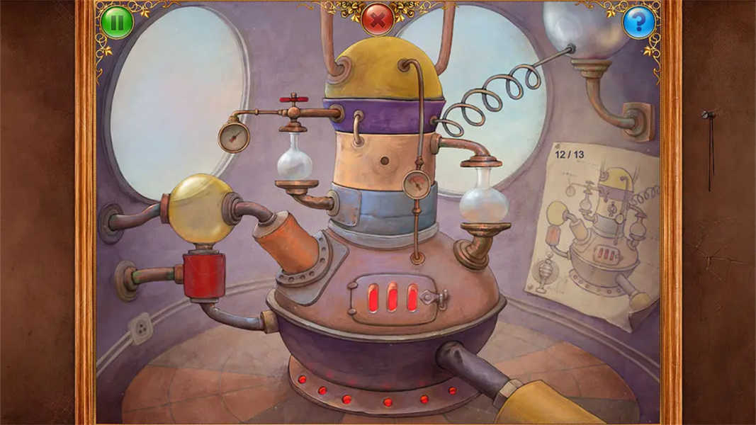 随着探索深入,你将面对超过30个富有创意的谜题,涵盖拼图、机关、找物等多种类型。若在某一关卡陷入困境,可随时点击右上角的问号图标获取提示,助你顺利推进剧情。