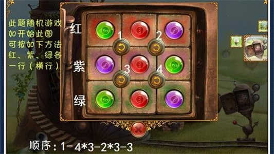 回到二层中央,解开密码谜题(答案为713)。返回一层,用密码开启机器,获得门上的梯子并点击机器内部。接着在各楼层收集灯泡(共5个)与拼图片(总计25片),并在三楼相框处完成瓶装碎片拼图,拾取钥匙打开箱子,取得扳手等关键道具。