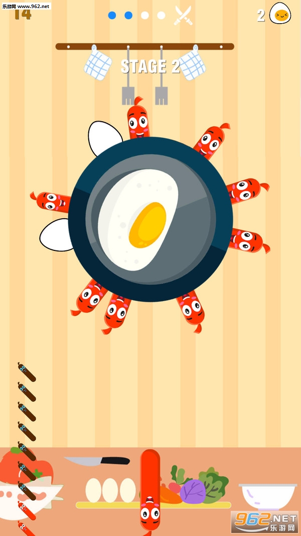 《2026年抛式香肠安卓版》这是一款非常轻松休闲的物理闯关类手游,游戏画风非常的清新魔性,游戏中玩家需要不断地投掷香肠,使得香肠们能够顺利插入到平底锅上,在平底锅上插入指定数量的香肠即可过关,注意插入的位置不要使得香肠相碰。