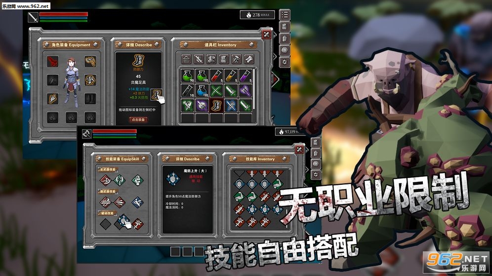 《无尽灵魂安卓版》是一款Lowpoly风格的硬核动作ARPG游戏,游戏中拥有大量的关卡,丰富的武器技能让你解锁,你可以选择骑士,剑士,射手,巫师四种不同的职业,自由的搭配组合武器和技能,完成关卡的任务,感受最热血的战斗快感!