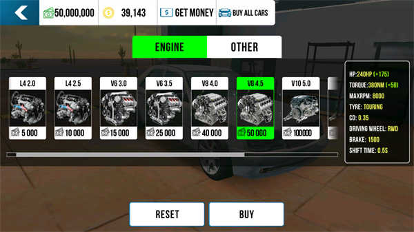 除了车辆改装,游戏还支持驾驶员角色外观定制。进入主界面点击DRIVER”,即可调整发型、肤色、胡须等面部特征,并自由搭配服饰与头饰,打造独一无二的虚拟形象。而车辆改装则通过GARAGE”进入,选择CAR UPGRADE”后,可依次对喷漆、引擎、齿轮箱、悬挂及底盘进行精细化调校。喷漆界面提供丰富的视觉元素,包括车身颜色、尾翼、轮毂乃至装饰旗帜,支持位置、大小与色彩的自由组合;引擎部分则允许更换不同型号动力单元,并实时查看性能参数变化,满足硬核玩家对机械细节的极致追求。