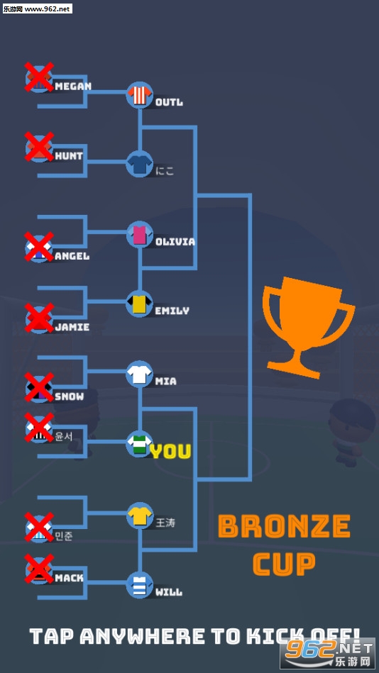 《踢球决斗》(KickDuel)是一款卡通风格的足球对战游戏,游戏中玩家将使用自己的角色来进行一场场射门对决,游戏的玩法轻松有趣,玩家只需要进行点击跳跃来进行阻挡和射门即可。游戏的操作简单容易上手,还在等什么呢?赶快下载体验吧!
